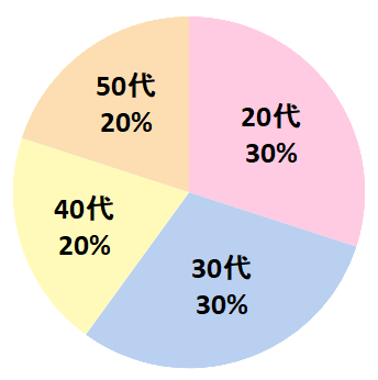 20代と30代がそれぞれ3割で全体の6割を占めていますが、40代・50代の方もそれぞれ2割ずつと、幅広い層が利用しています。