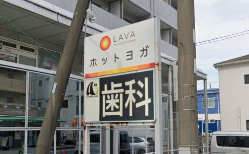 駅から歩いて数分。駅前の通りを進むと、白とオレンジのLAVAの看板が見えてきます。