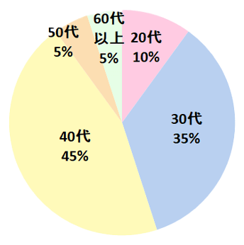 30代が35%、40代が45%と、全体の7割を占めています。30〜40代の利用者が中心です。