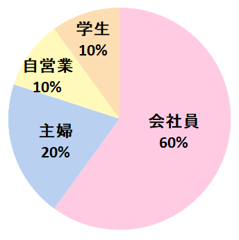 過半数が会社員の方ですが、主婦や学生の方も利用されています。お仕事帰りや家事の合間など、多様なライフスタイルに合わせて通いやすいジムと言えそうです。